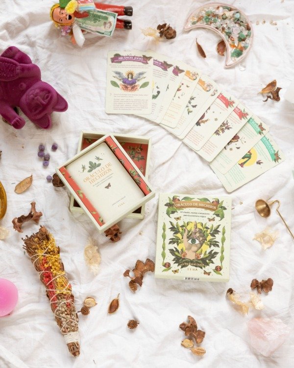Este oráculo contiene 44 cartas que se dividen en los 4 elementos: Fuego, Tierra, Aire y Agua.
