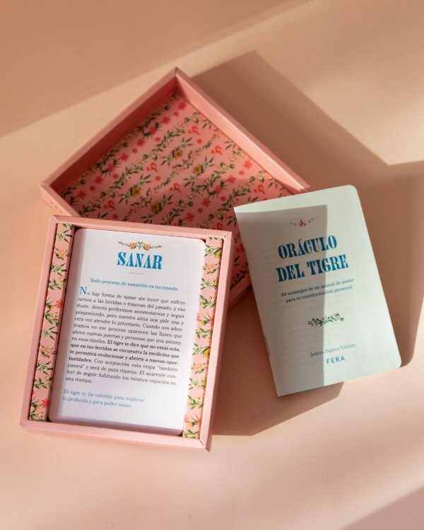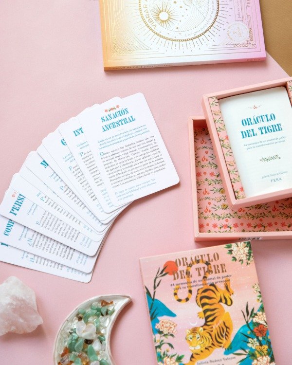 Este oráculo se compone de 44 cartas para la transformación personal. Fueron mensajes que canalizó Julieta Suárez Valente, astróloga y tarotista a través del tigre Oliver, su animal de poder. Estos mensajes no quedaron en meras palabras : Julieta las ha experimentado en cuerpo y alma a lo largo de todo su camino. En el dossier encontrarás ejemplos personales, anécdotas y confesiones relacionadas a cada una de las 44 propuestas de las cartas.